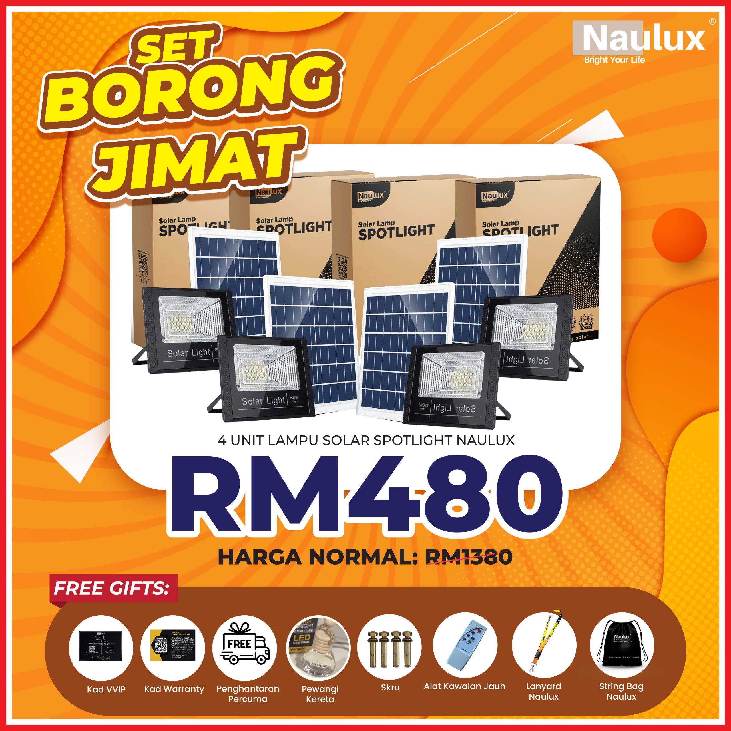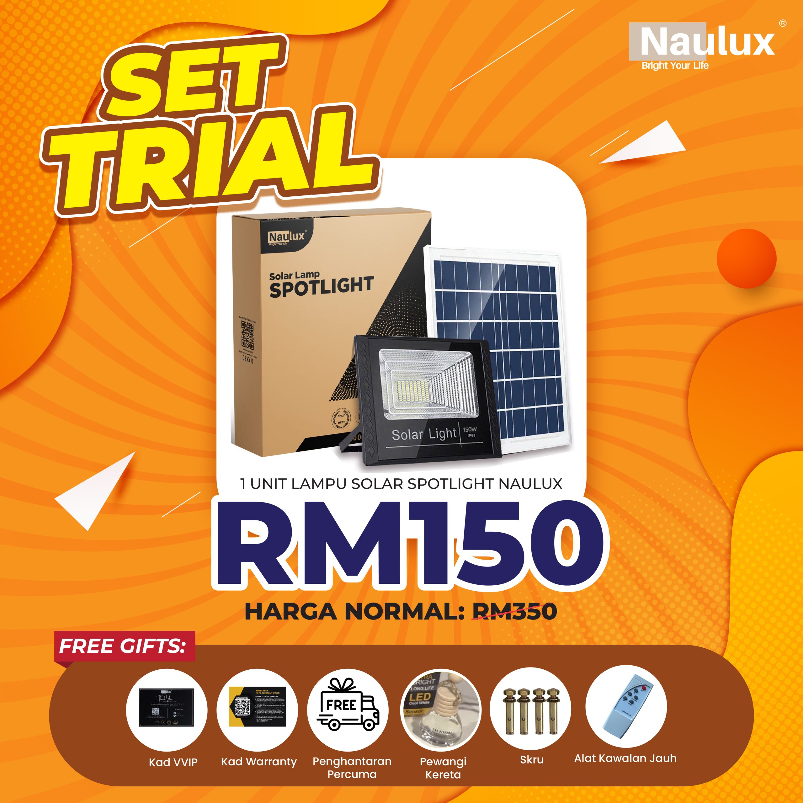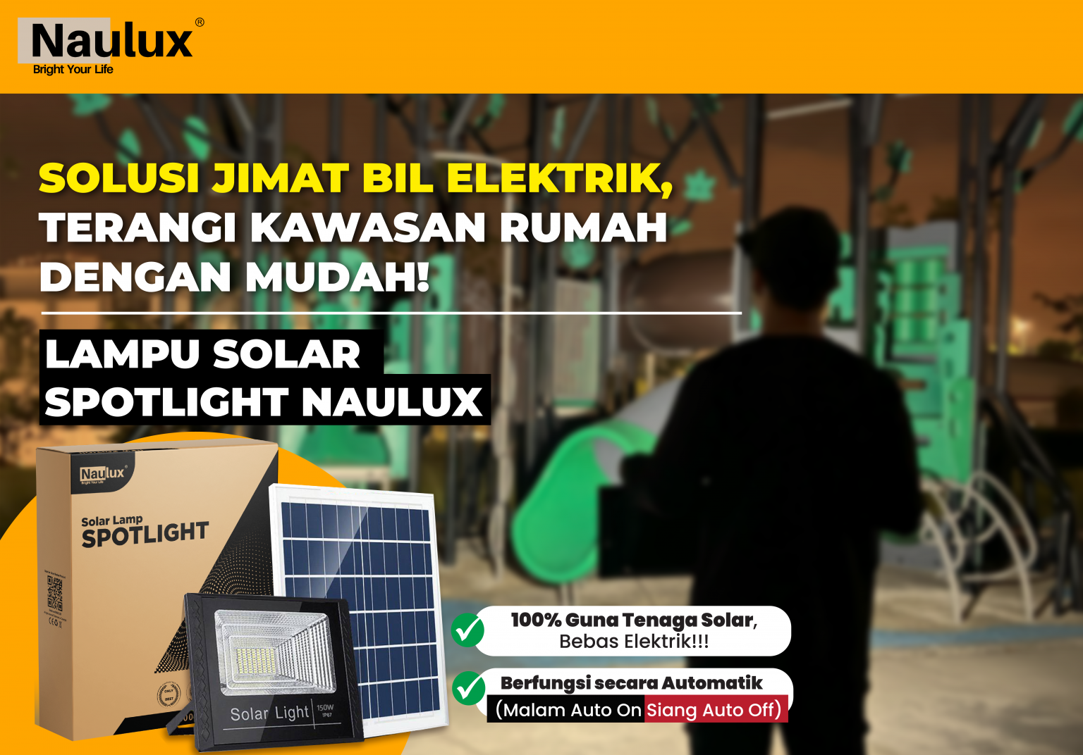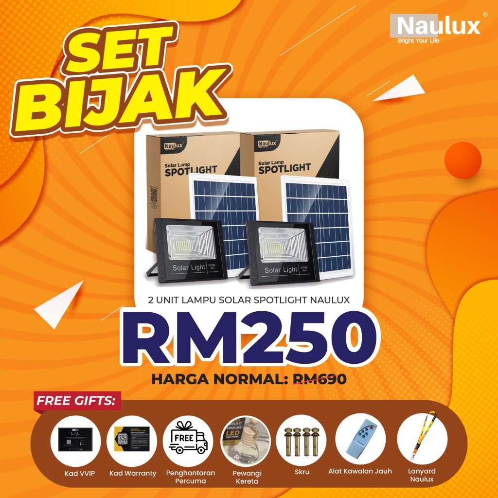 TAK PERLU RISAU LAMPU SOLAR NAULUX NI ADA 100% JAMINAN
